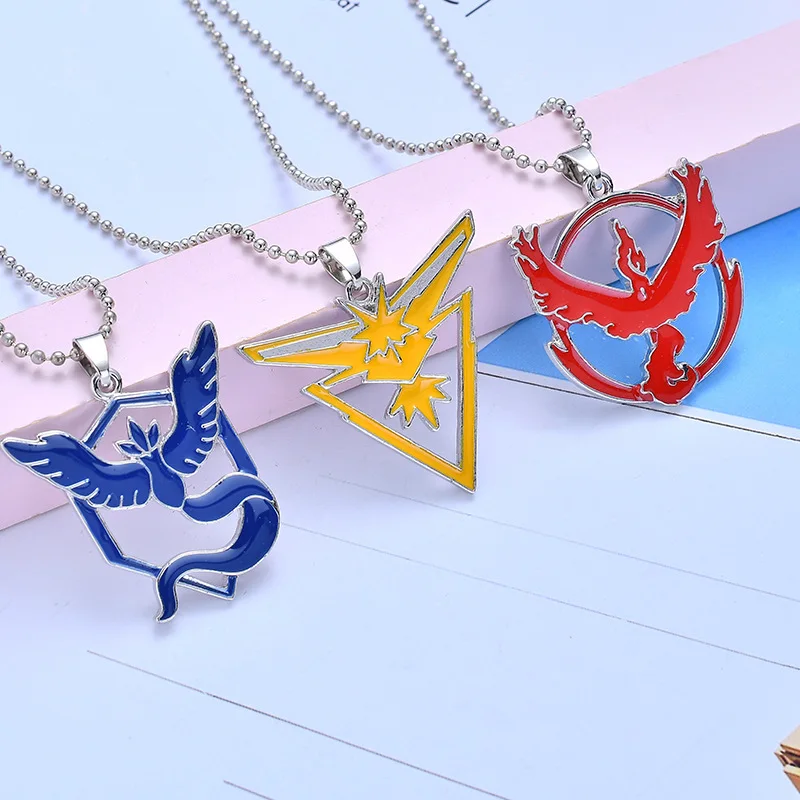 Cartoon Pokemon Necklace Cute Pikachu Anime Metal Team Valor Mystic Instinct Logo Pendant Bead Chain for Fans