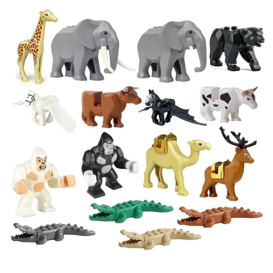 The Zoo African Animal Elephants Camel Deer Giraffe Gorilla Horse Tiger Building Blocks Mini Action Figure Bricks Toys Kids Gift