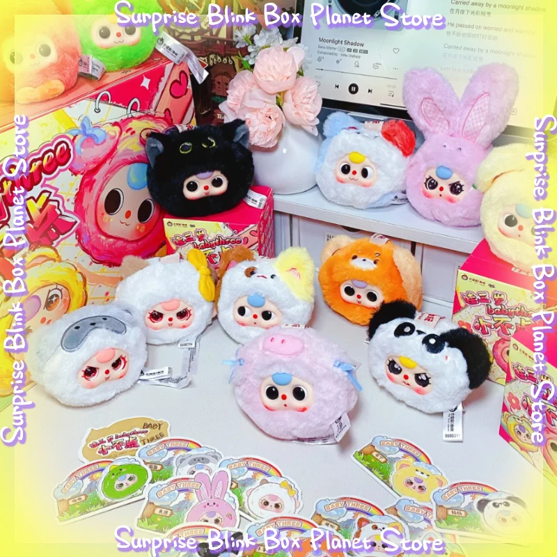 Genuine Baby Three Tiny Little Ones Mini Animal Head Plush Trendy Toy Blind Box Surprise Box Charm Backpack Ornament Kids Gift