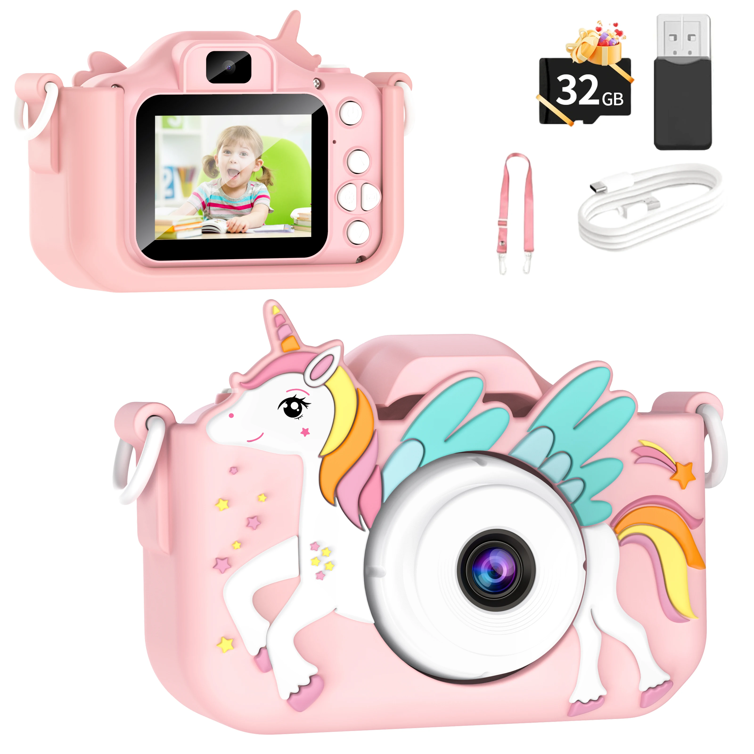 Lovely Unicorn Children Mini Digital Camera Can Take Pictures Video Small Camera Photography Children Birthday Gift Kids Toys  Read more