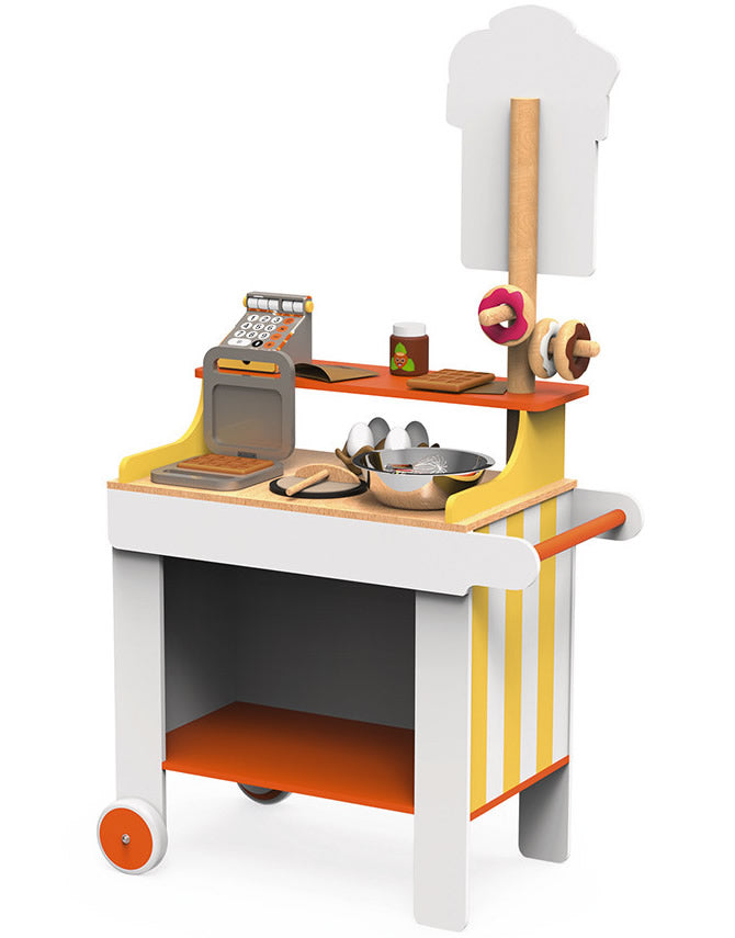 To make good cr?pes, you need : an easy-to-move 'Cr?pes & Co' mobile stand with 40 accessories : 1 cash register, 1 set of coins and notes, 1 waffle iron, 3 waffles, 3 donuts, 1 box of 4 eggs, 1 jar of spread, 3 cr?pes, 3 'fillings' for the cr?pes, ...