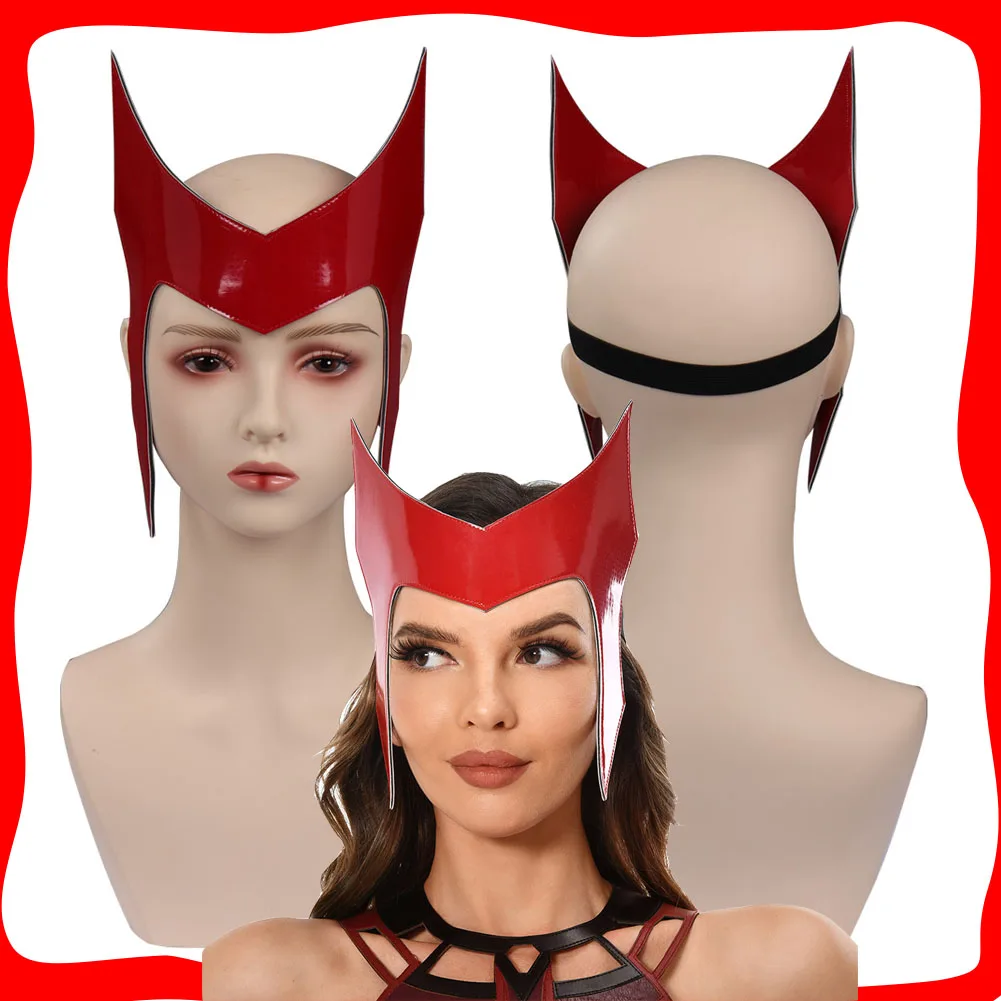 Scarlet Witch Mask Wanda Cosplay Women Red PU Masks Helmet Masquerade Halloween Party Costume Props for Adult Female Headwear