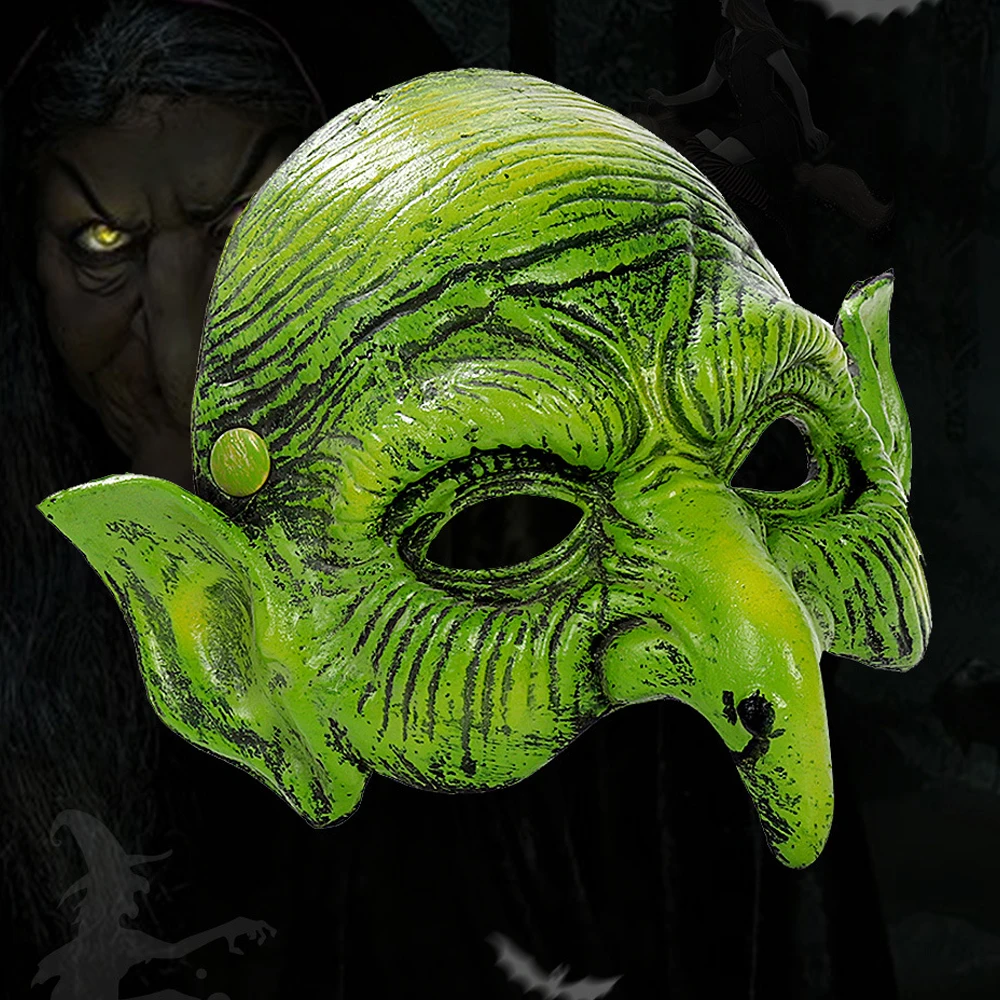 Witch Mask New Halloween Accessories Carnival Party Stage Props Half Face Green Witch Mask Black Magic PU Mask Soft Feeling