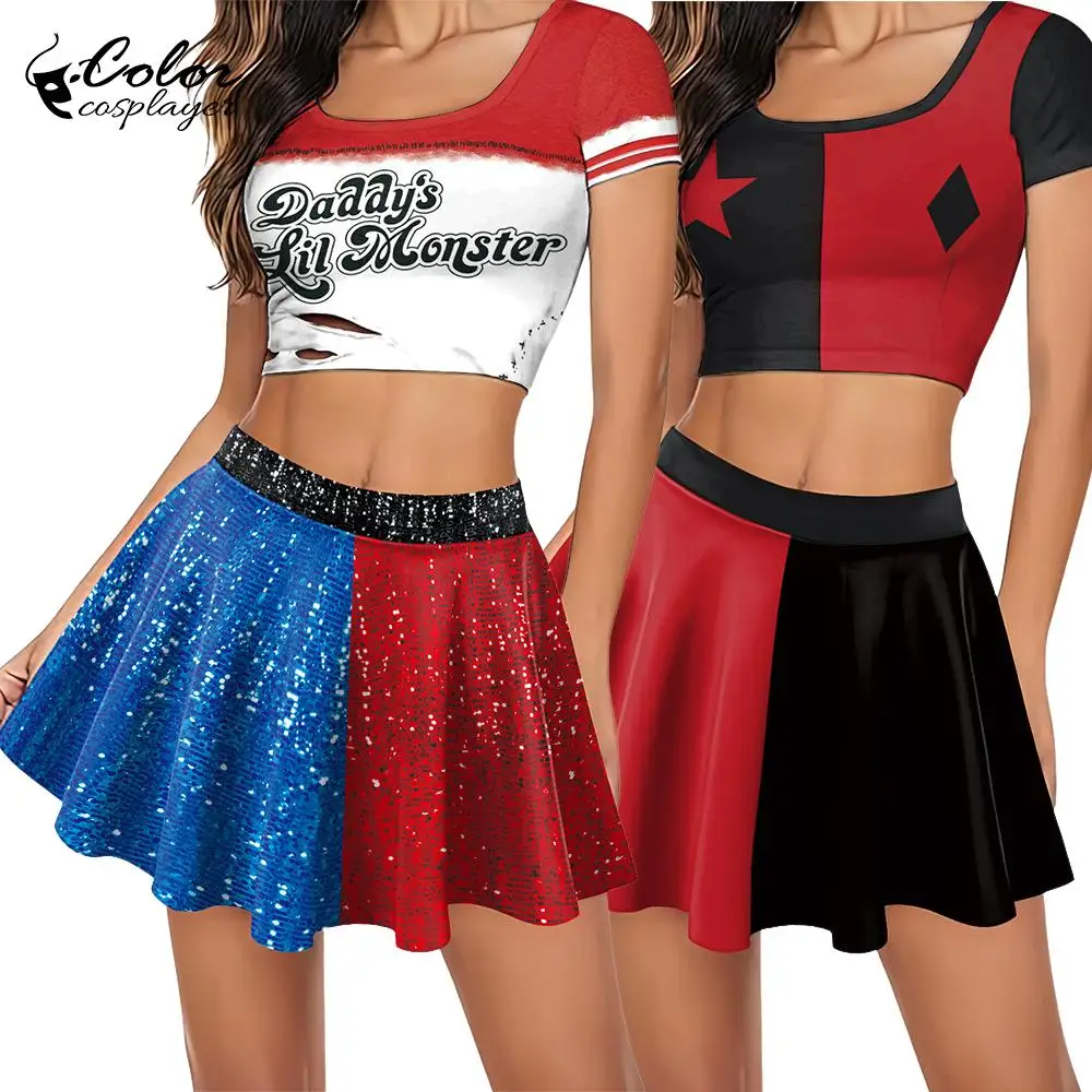 Color Cosplayer Movie Clown Women Suit Joker Hero Cosplay Costume 3D Printing Cheerleading Costume Parade Party Carnival Wear