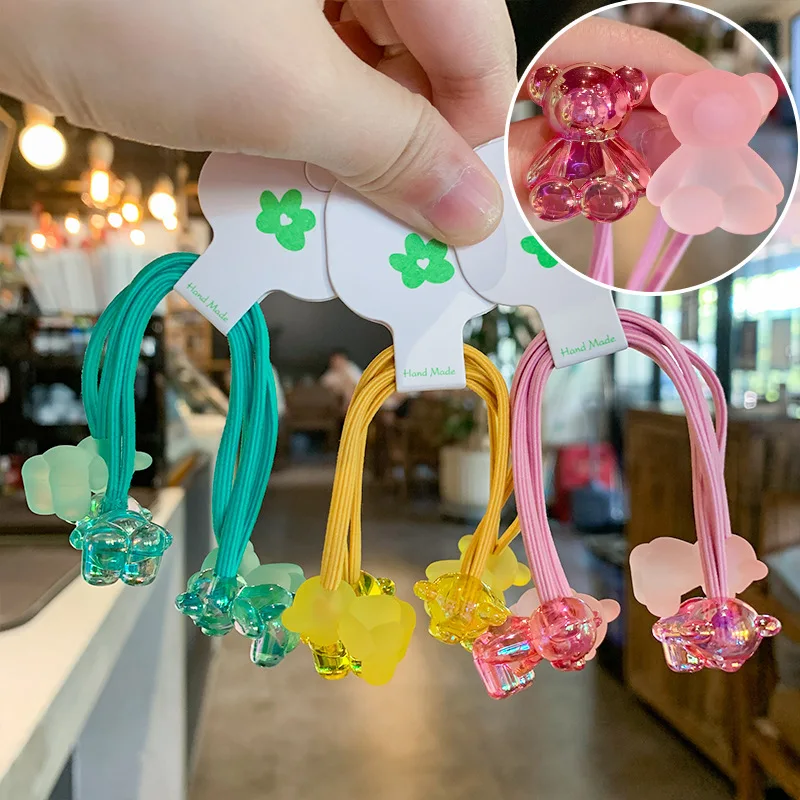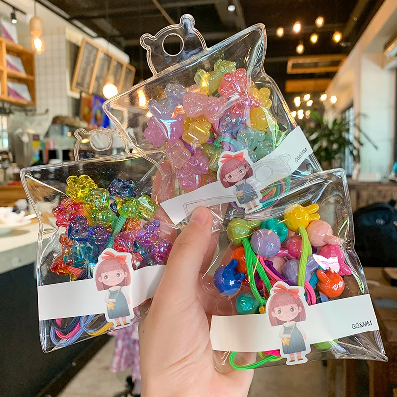 7/8pairs/lot Kids Cute Bear Heart Hair Bands Girls Bead Hair Ties Cartoon Rabbit Headband Baby Hair Rope Children Accessories
