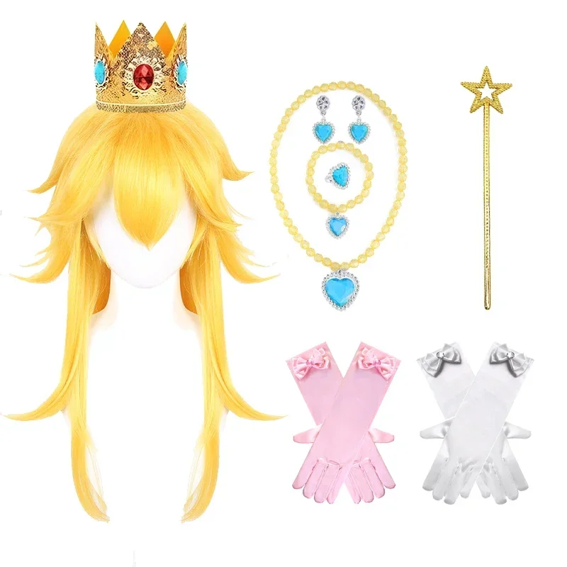Princess Wig Long Wavy Halloween Anime Dess Up Wig Yellow Costume Party Wigs Yellow Princess Wig Peach Crown Magic Wand Jewelry