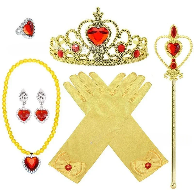 New Disney Beauty and The Beast Princess Gloves Wand Crown Set Wig Braid for Princess Cosplay Dress Up