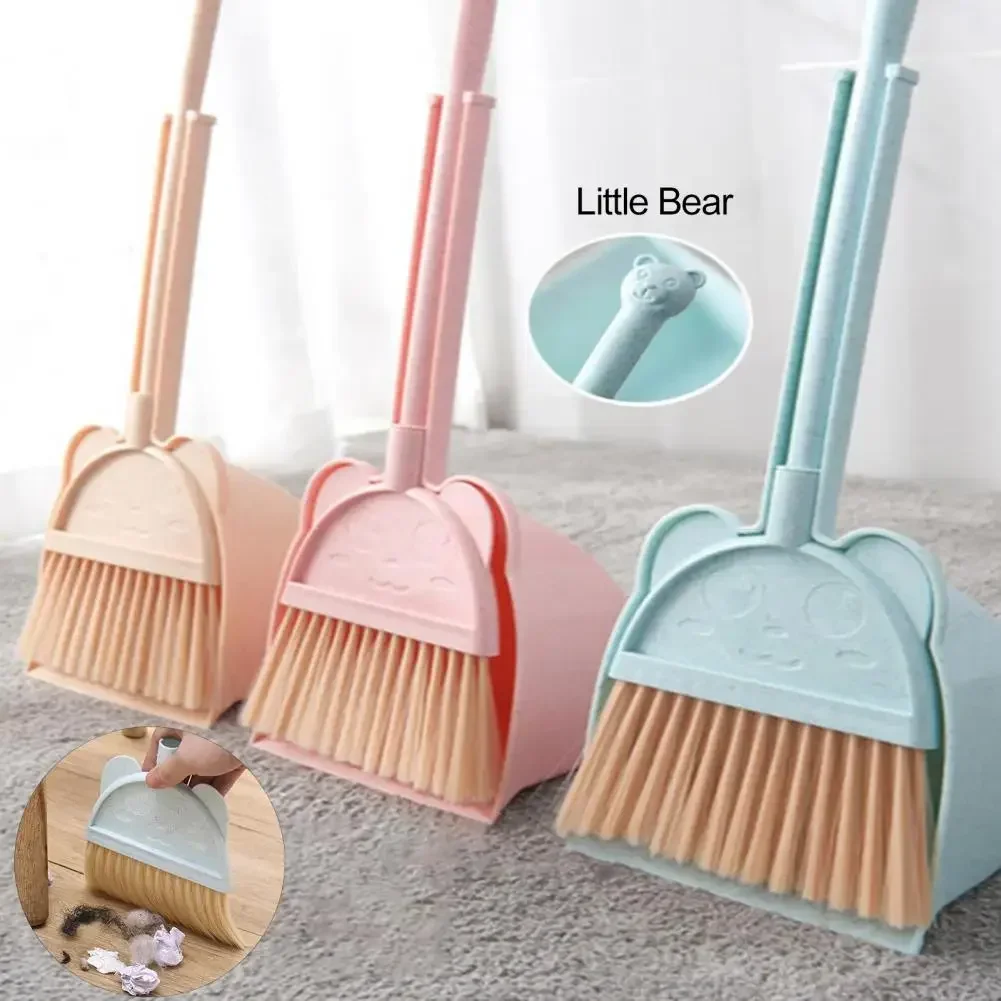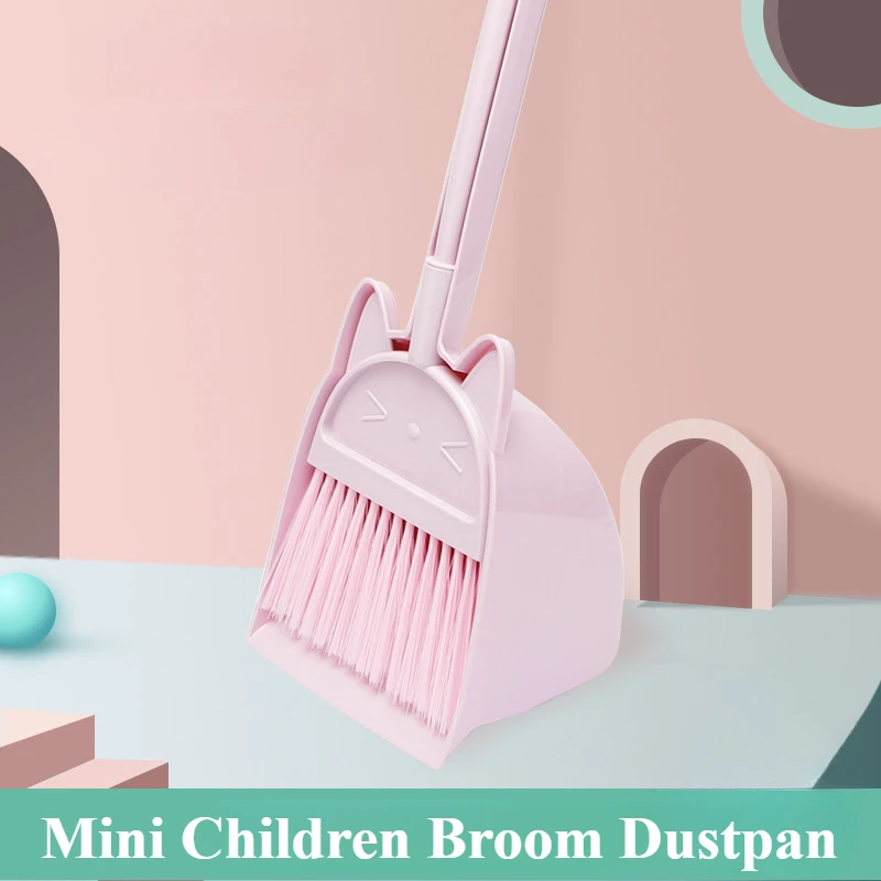 1 Set Mini Children Broom Dustpan Cartoon Flexible Bristles Kids Pretend Play Toddlers Indoor Outdoor Floor Sweeping Tool Kit
