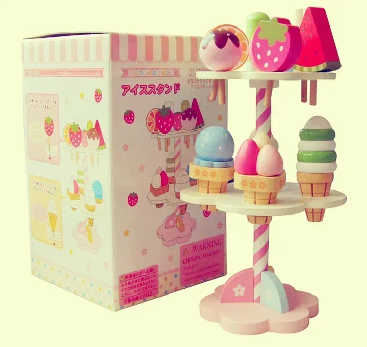 Funny Wooden Mother Garden Pretend Play House Kitchen Toy Cooking Strawberry Three Layer Cake Ice Cream Stand Blocks Gift  Read more
