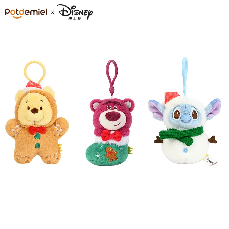 Cute Disney Snowman Stitch Plush Doll Stitch Pendant Strawberry Bear Doll Winnie the Pooh Pendant Dopamine Strawberry Bear Doll