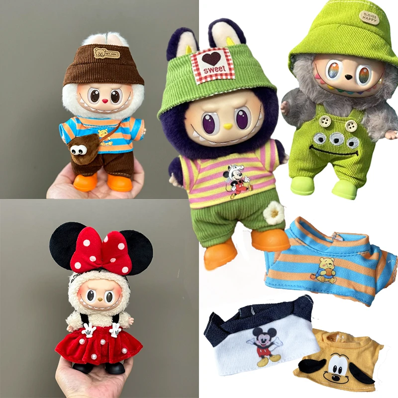 15 17cm For Labubu Doll Clothes Disney Mickey Minnie Mouse Lotso Stitch Alien Winnie Outfit Clothing Sitting Party Accessories