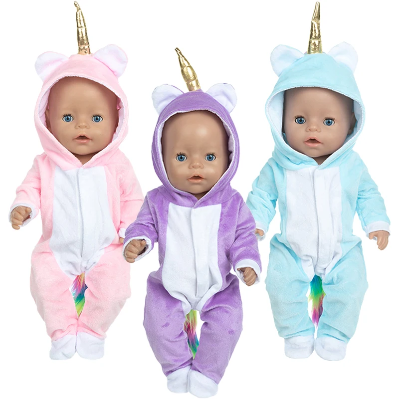 Doll Clothes Fit 16-18Inch/40-45cm Baby New Born Doll Clothes Coat Unicorn Hoodie Set Baby Doll Unicornio Doll Pajamas Girl Gift  Read more