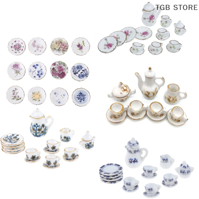 1Set 1:12 Miniature Porcelain Tea Cup Set Chintz Flower Tableware Kitchen  Read more