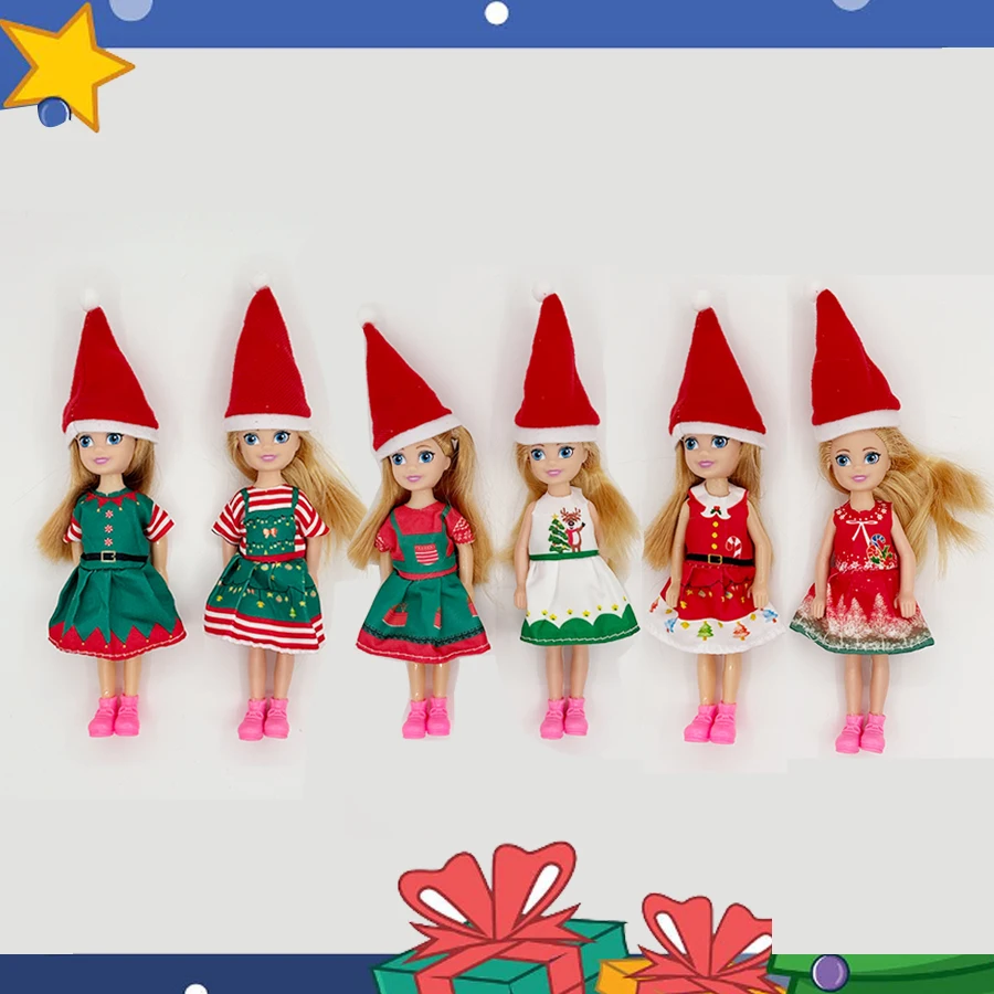 6PCS Fashion Christmas Day Outfic Dresses for 5 in/12cm Dolls Clothes with Hat Doll Accessories Christmas Gift for Children Toys