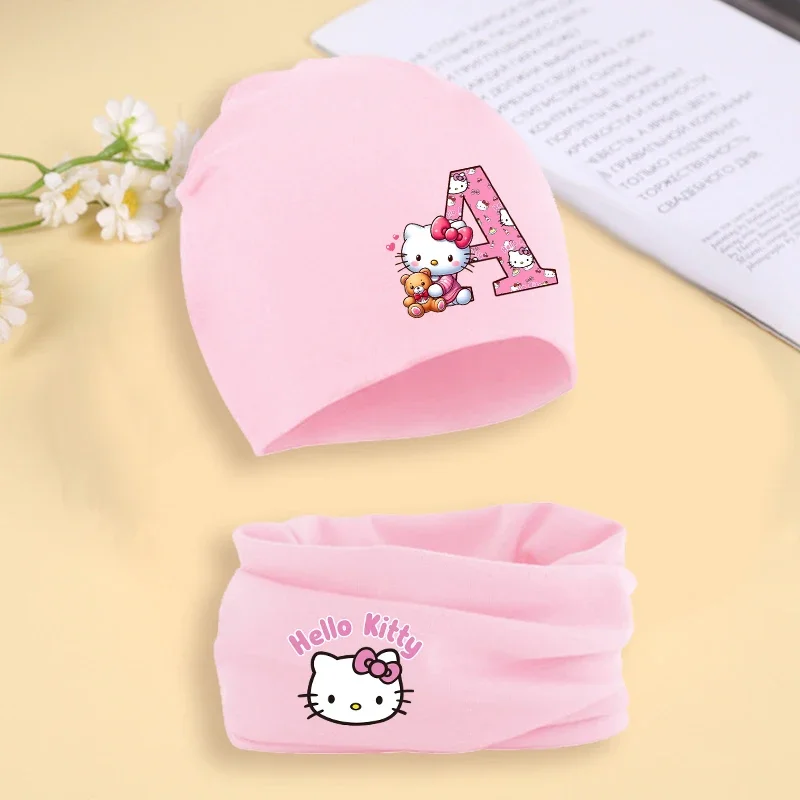 Sanrio Beanie Scarf Sets Hello Kitty Letter Printed Girls Lovely Y2K Style Autumn Winter Warm Bonnet Neck Protection Scarves Hat