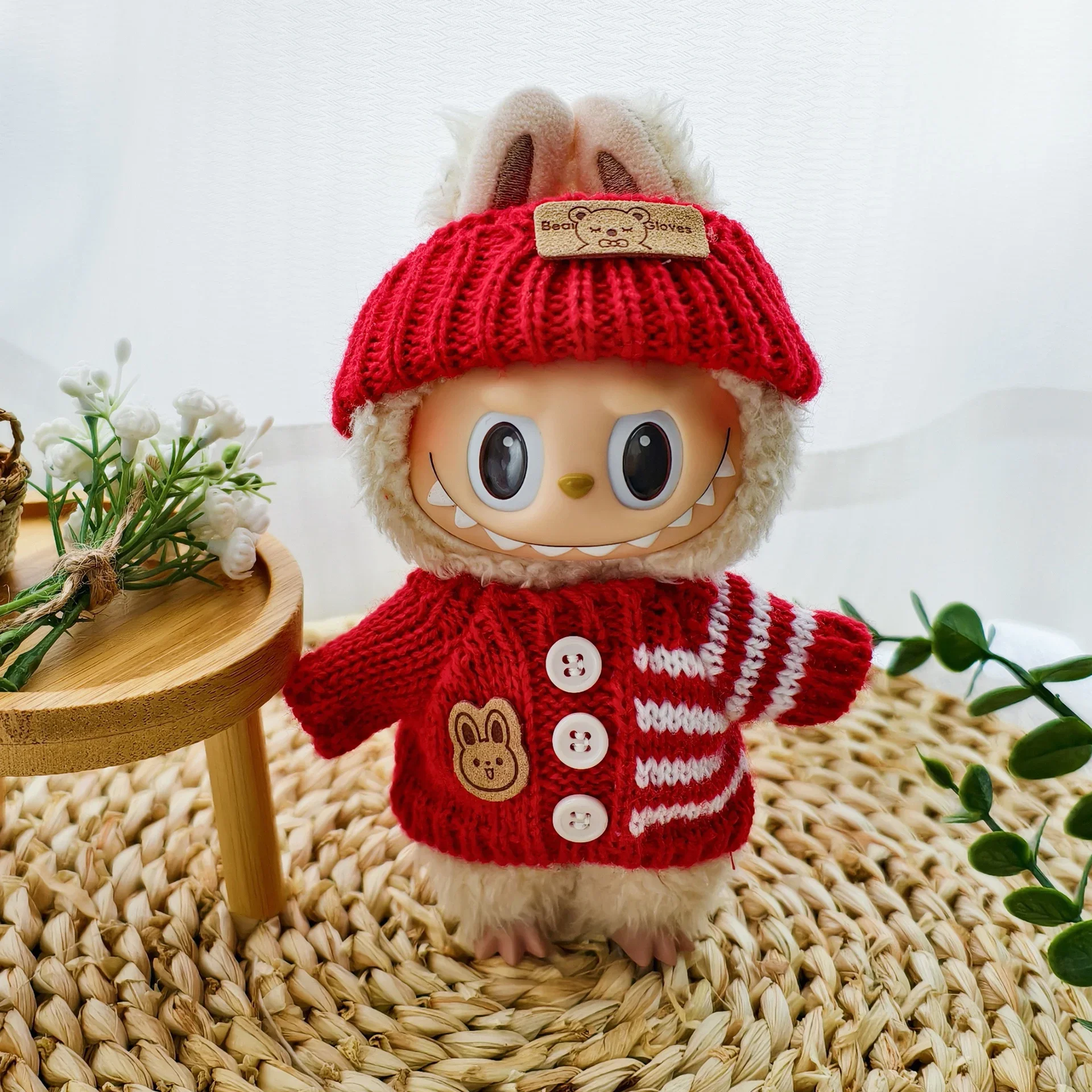 17CM Plush Doll Clothes Outfits For Labubu Cute Animal Cartoon Fashion Style Kawaii Sweater Pants Set Autumn Winter Holiday Gift