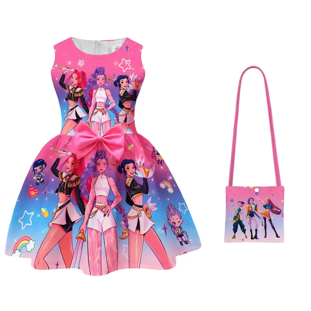 Kpop Demon Hunters Kids Clothes Set For Halloween Party Birthday Cosplay Costume Summer Fashion Baby Girls Princess Dresses+Bag