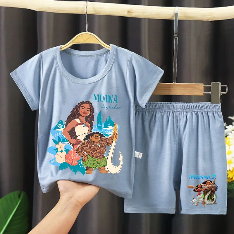 Moana Pajamas Set Pants Suit Summer Short Sleeved T-shirt Baby Movie Sleepwear Girls Children Home Clothes Kawaii Nightgown Gift