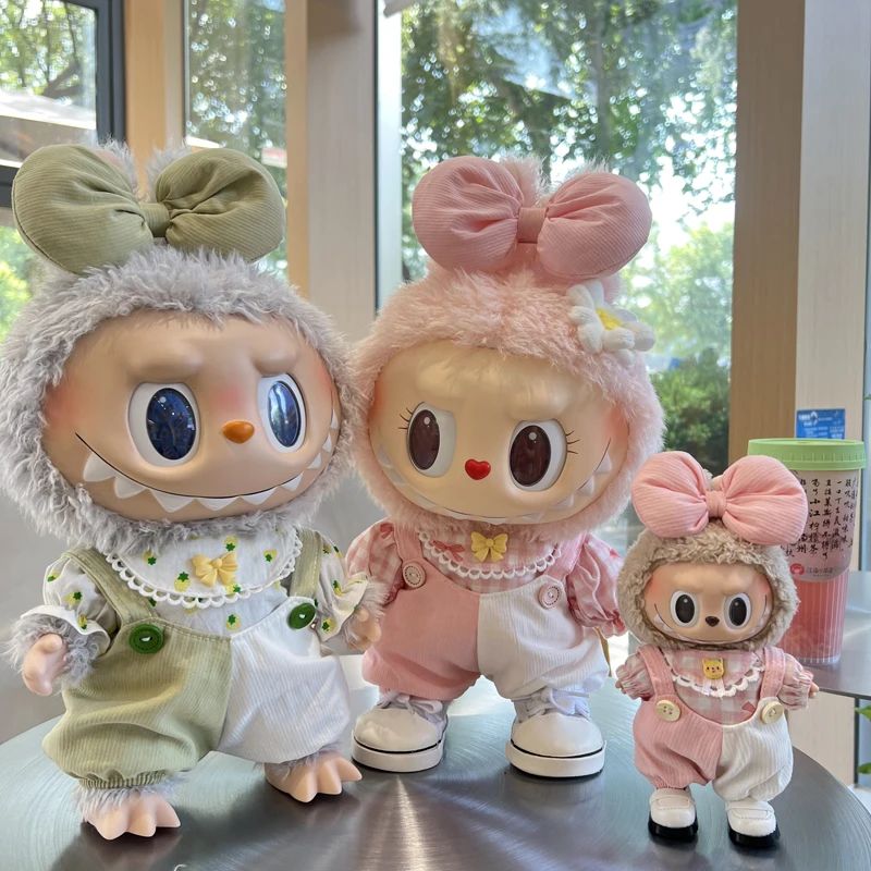 LABUBU Rubble Vinyl Plush Doll First and Second Generation Spring Wild Summer Trendy Play Color blocked Strap Pants Set