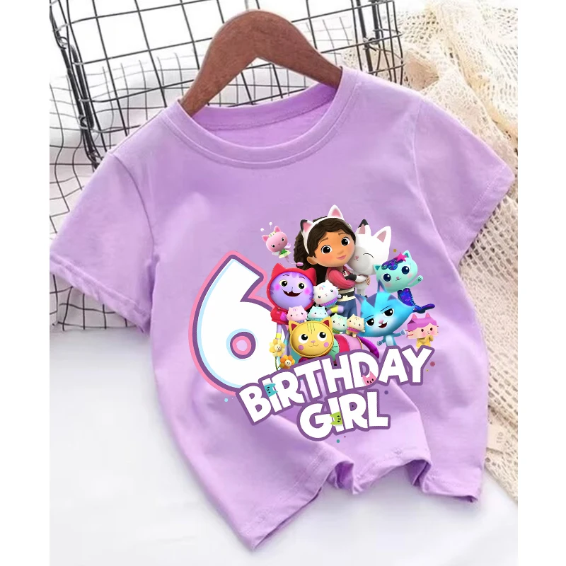 Gabby Dollhouse T-Shirt Cute Cartoon Digital Baby Summer Top Child Pop Fashion Tee Girls Anime Cat Number Clothing Birthday Gift