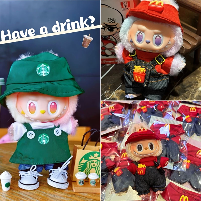 15 17cm For Labubu Doll Fashion Coffee Wroking Clothes Fast Food Workwear Hambuger Cola Fries Style Cospaly Dollhouse Accessorie