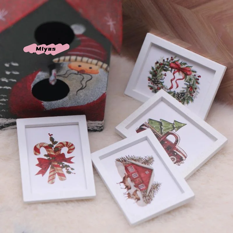 1/12 Dollhouse Mini Christmas Wall Mural Ornament Dollhouse Home Decoration Dolls House Micro Xmas Scene Photo Props  Read more