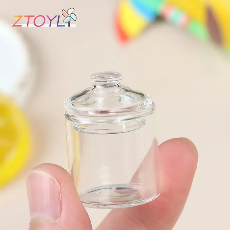 1/12 Scale Miniature Dollhouse Glass Candy Bottle Jar Pretend Play Toys Doll Kitchen Mini Cookies Simulation Storage Can Model