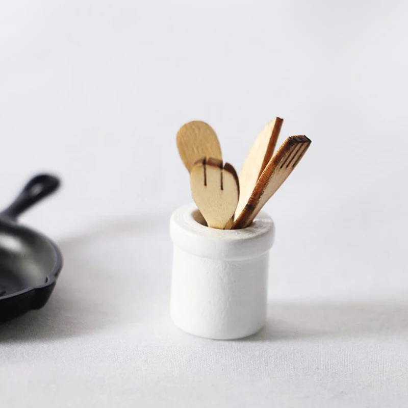 1Set Wooden Knife And Fork Metal Whisk Jar Set Dollhouse Miniatures 1:12 Accessories Doll House Mini Kitchen Accessories