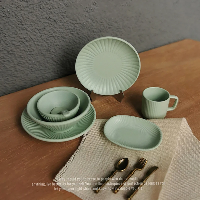 7Pcs/Set Dollhouse Mini Decorative Dish Ornament Striped Tableware And Utensils Model Kitchen Furniture Accessories Kids Toys