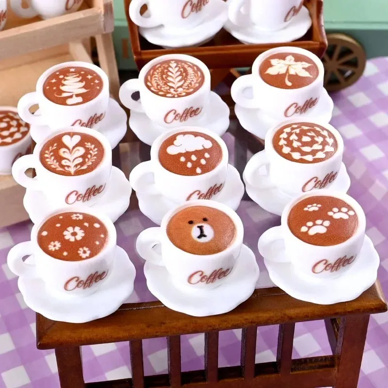 10Pcs Resin Cute Coffee Cup Plate 1/12 Miniature Dollhouse Fake Food for Doll Kitchen Accessories DIY Scrapbook Crafts