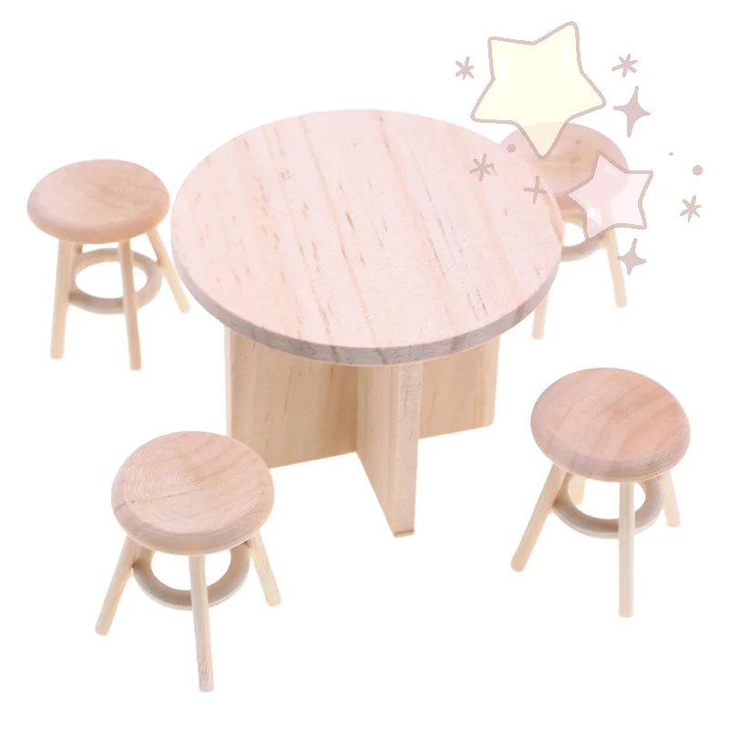 1/12 Dollhouse Mini Table With Chair And Stool Set For Dining Room Doll Home Furniture Micro Scene Construction Props
