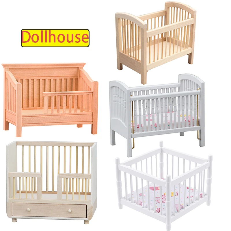 Dollhouse Miniature Cradle Crib Bedding Set Baby Doll Furniture Toys For Dolls Furniture Decorate