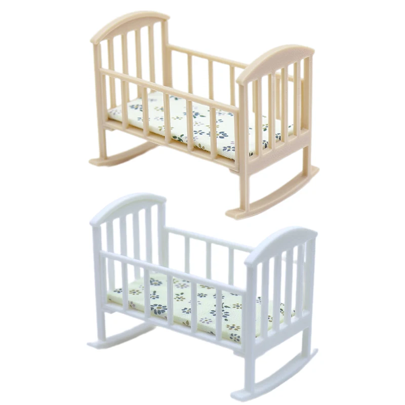 1/12 Scale Dollhouse Mini Cradle Baby Bed Rocking Bed Model Simulation Furniture Decorations Toy