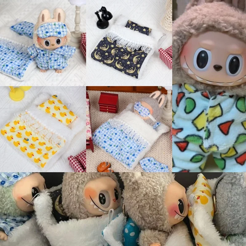 for 17cm Labubu Doll Clothes Fashion Clothes Pillow Bed Quilt Set Doll Clothes Cute Cartoon Sets Dolls Accessories Gifts  Read more