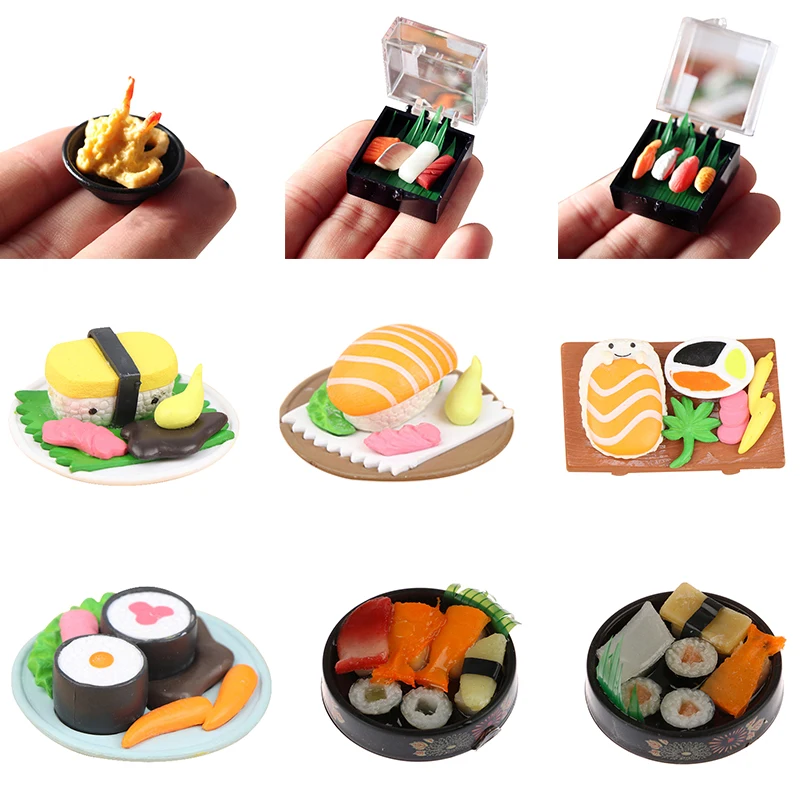 1/6 1/12 Dollhouse Kitchen Decoration Accessories, Mini Japanese Sushi Fish Ball Tempura Bento Box Set Dolls House Kitchen Toys