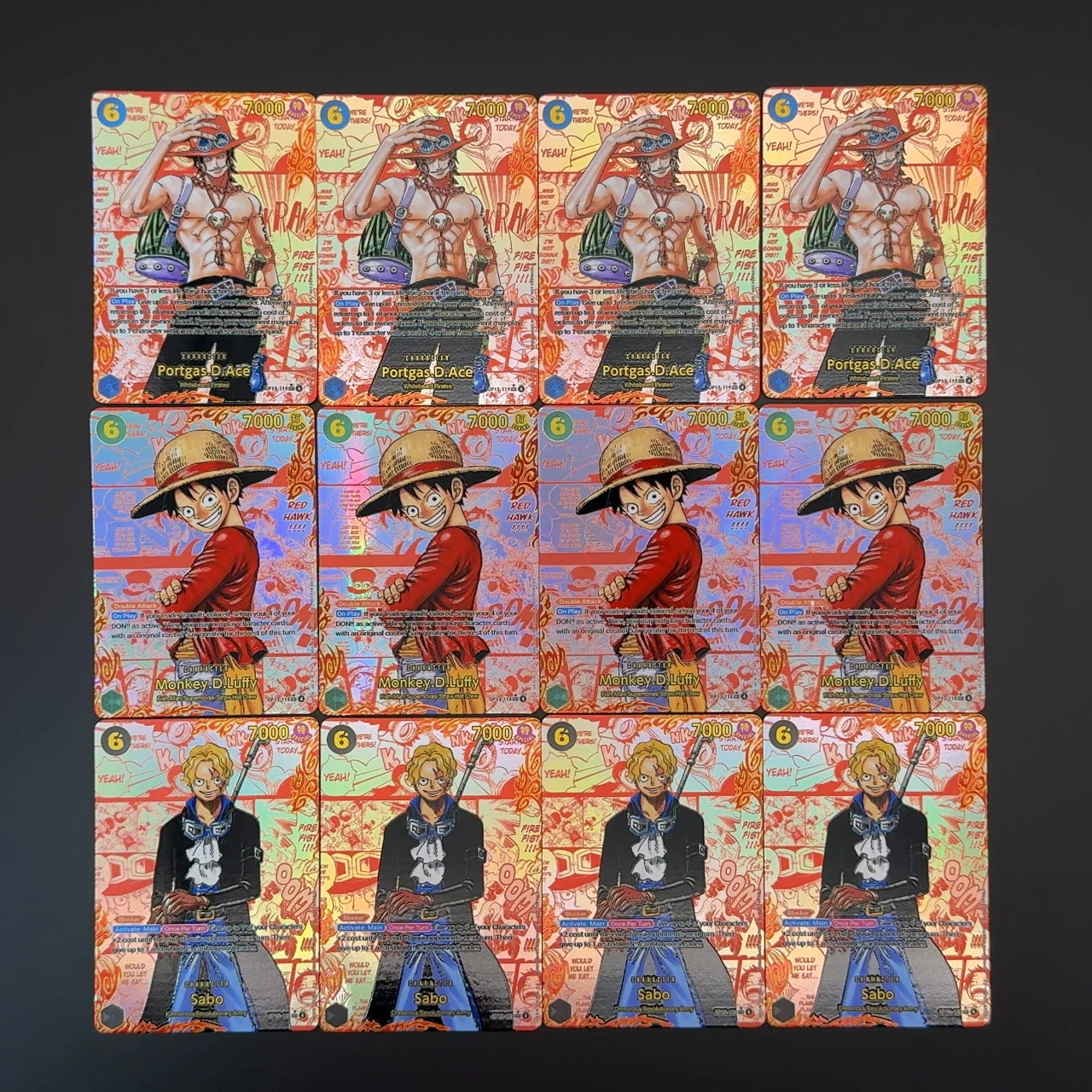 One Piece TCG OPCG English Leader card OP13 Red manga card Luffy Ace Sabo OP13-118 OP13-119 OP13-120 Textured Foil Proxy Card  Read more