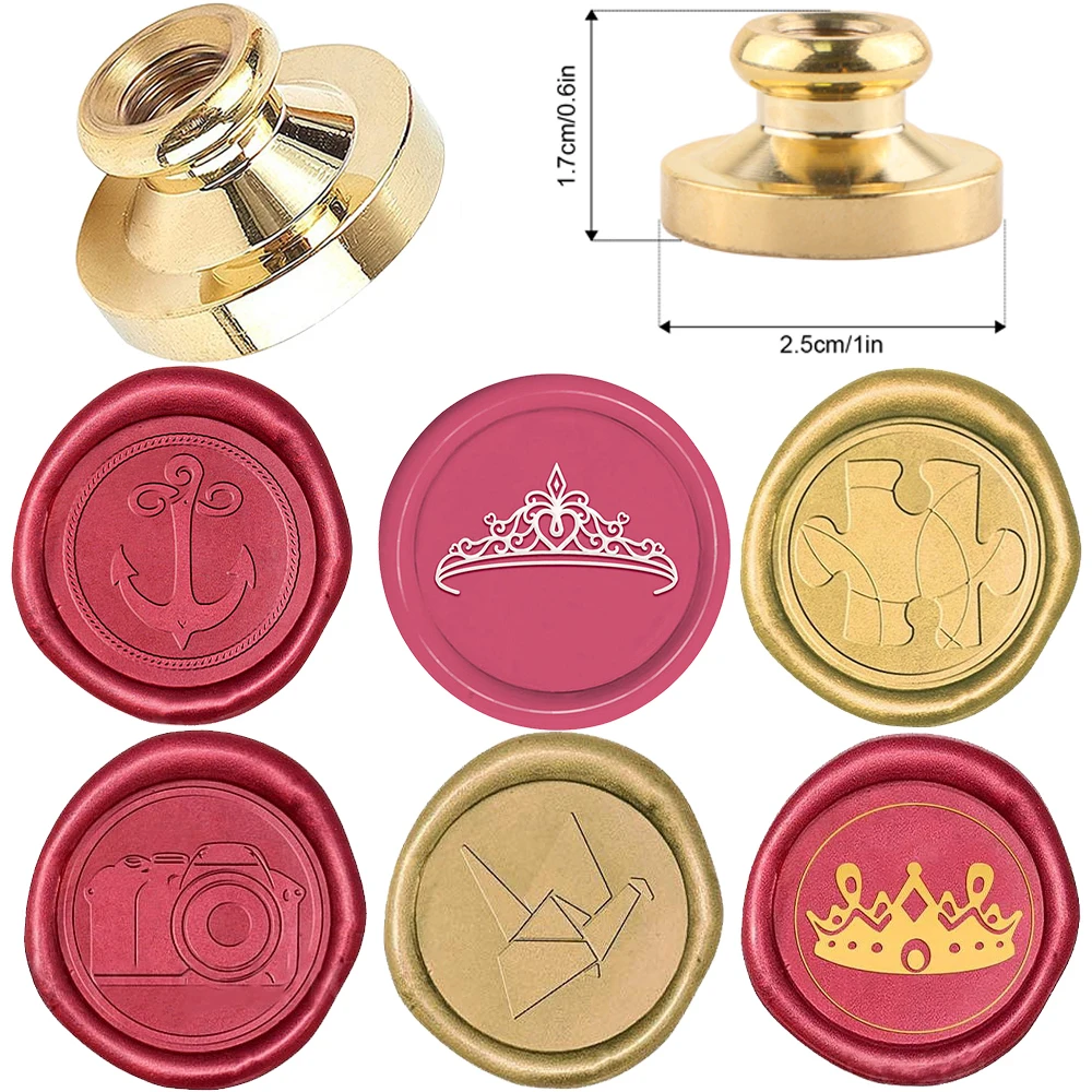 Crown Camera Puzzle Crane Anchor Mixed Seal Wax Stamps 25mm Removable Brass Head for DIY Scrapbook Envelope Craft Greeting Cards