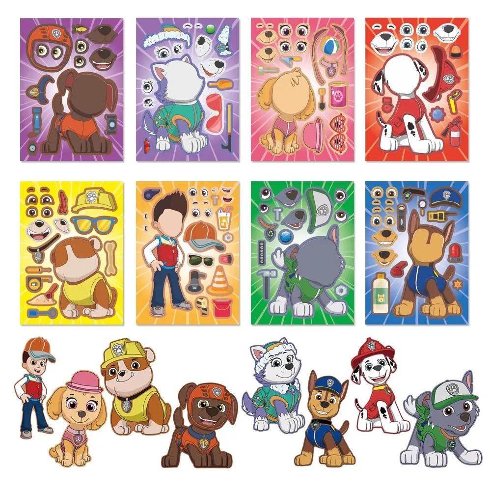 16Sheets PAW Patrol Puzzle Stickers Children Make a Face Ryder Chase Funny Anime Assemble Jigsaw Kid DIY Game Party Decoration