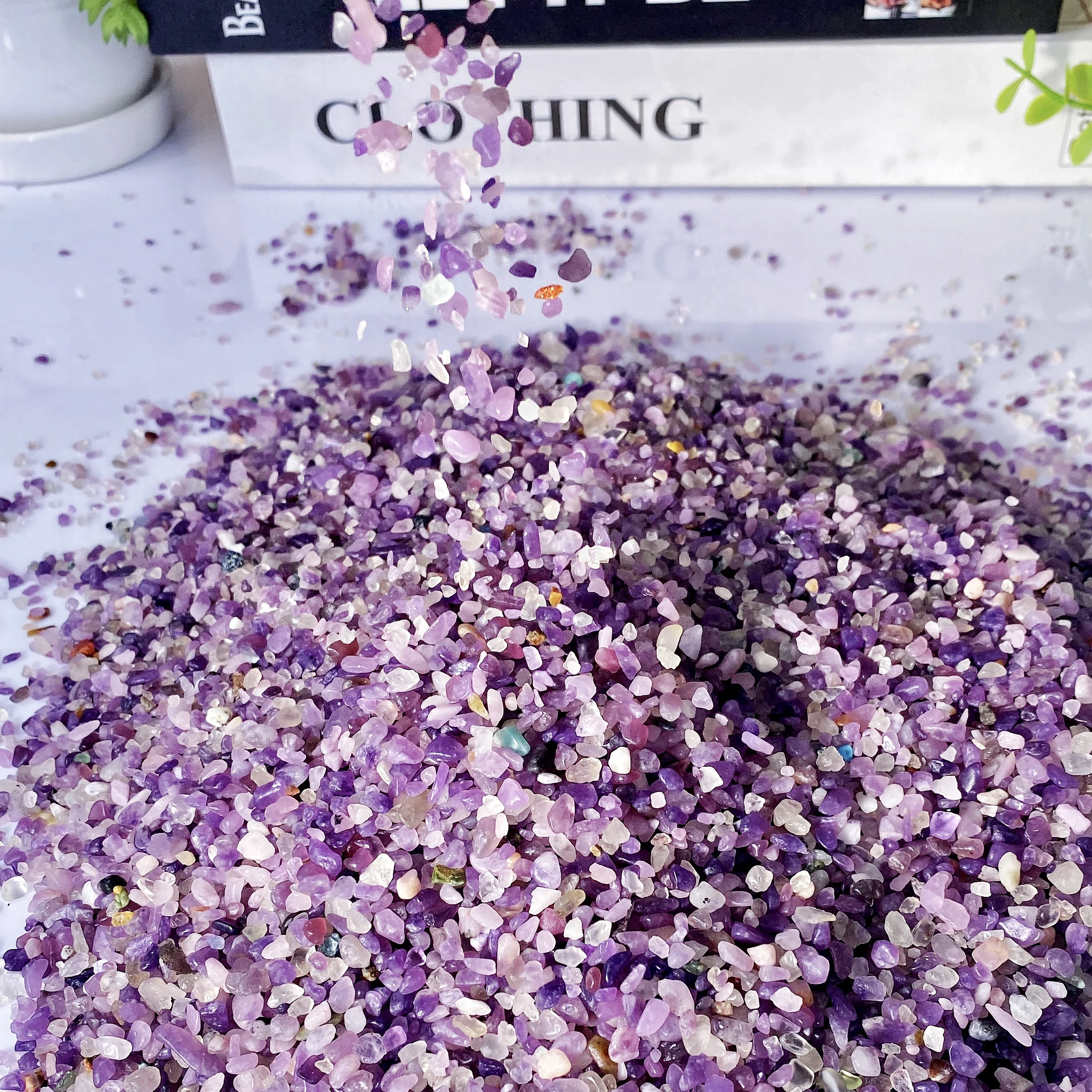 50g/100g 1-5mm Lepidolite Chips Natural Chip Stones, Perfect for DIY Mosaic Art & Crafts, Gift, Fish tank Decoration.