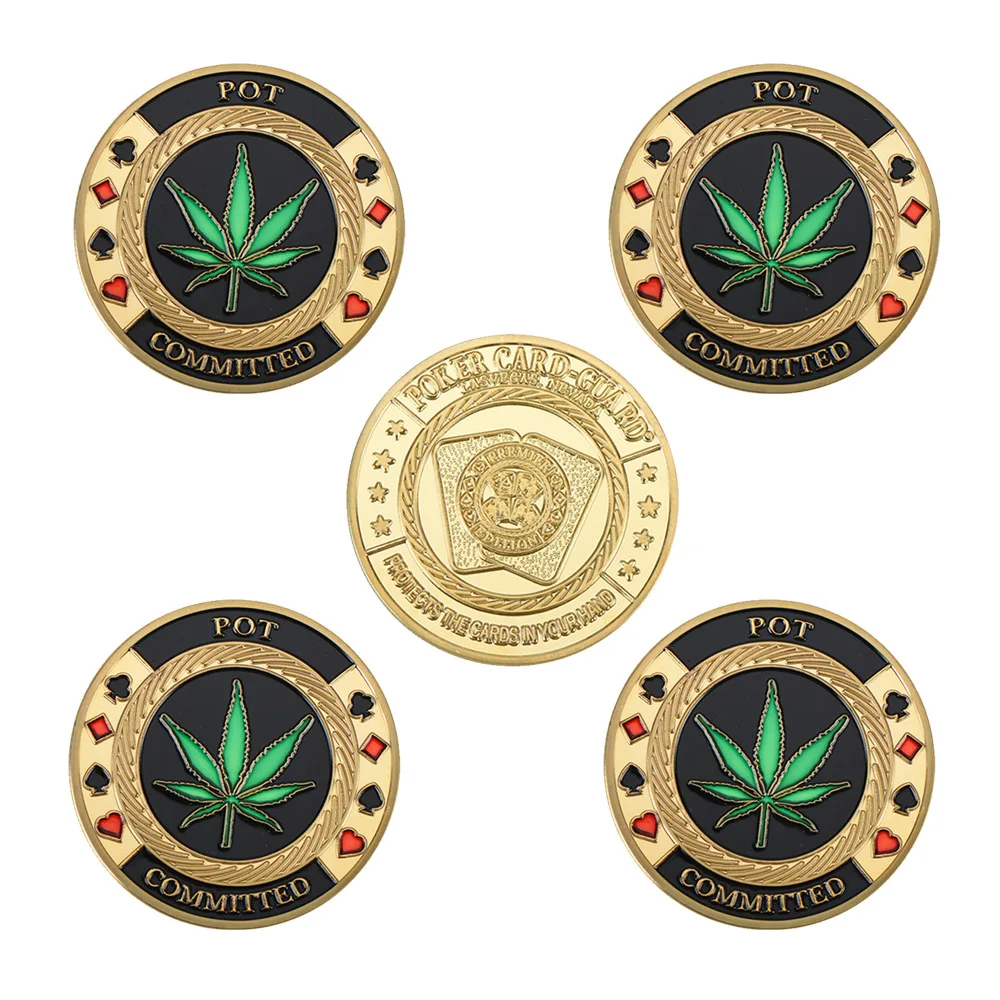5pcs POT Committed Metal Poker Chip Casino Challenge Coin Poker Card Guard Lucky Souvenir Token Coin Gifts for Friends
