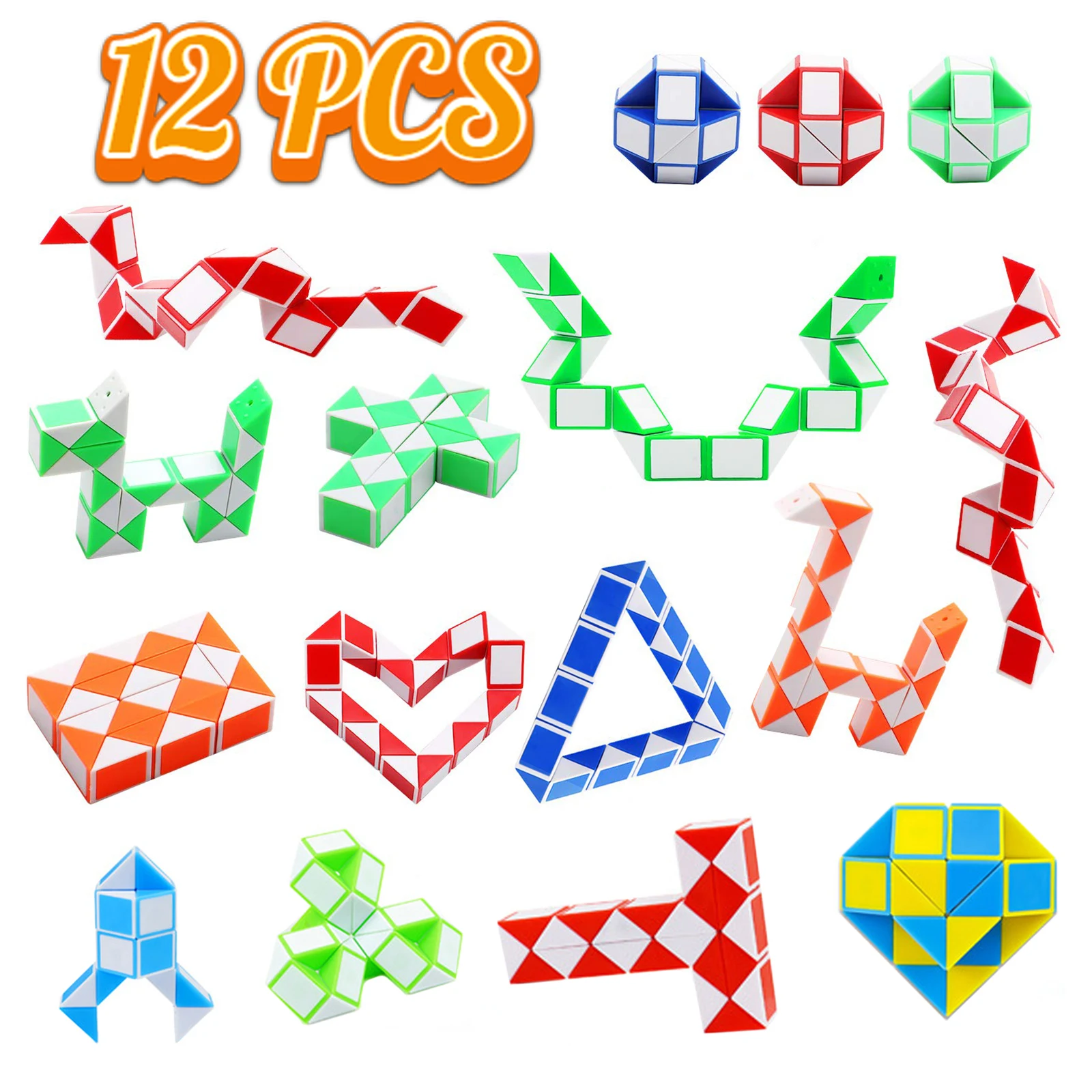 12-6pcs Random Snake Cube Twist Folding Puzzle Fidget Toy 24 Blocks Magic Ruler Anti Stress Reliever Game Gift for Kids Adults