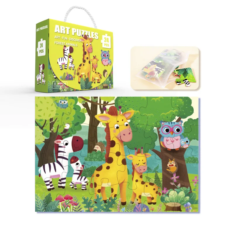 24PCS/Set Large Particle Paper Puzzle Children's Portable Gift Box Cartoon Animal Traffic Puzzle Early Education Educational Toy
