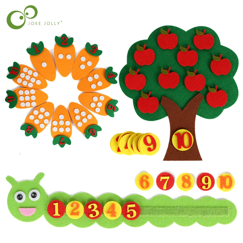 1-10 Montessori Educational Toy Children's Puzzle Handmade DIY Toy Kindergarten Carrot Apple Tree Match Digital Teaching GYH