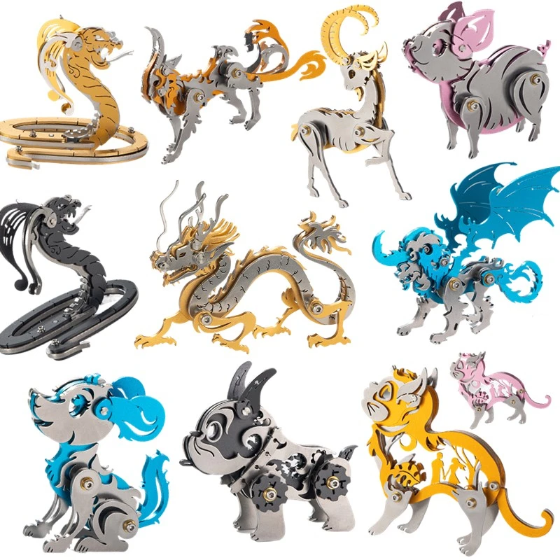 MOKR Animal 3D Metal Puzzle Dragon Cat Dog Snake Gift And Metal Toys For Kids Puzzle Adults Learning Education DIY Jigsaw Model