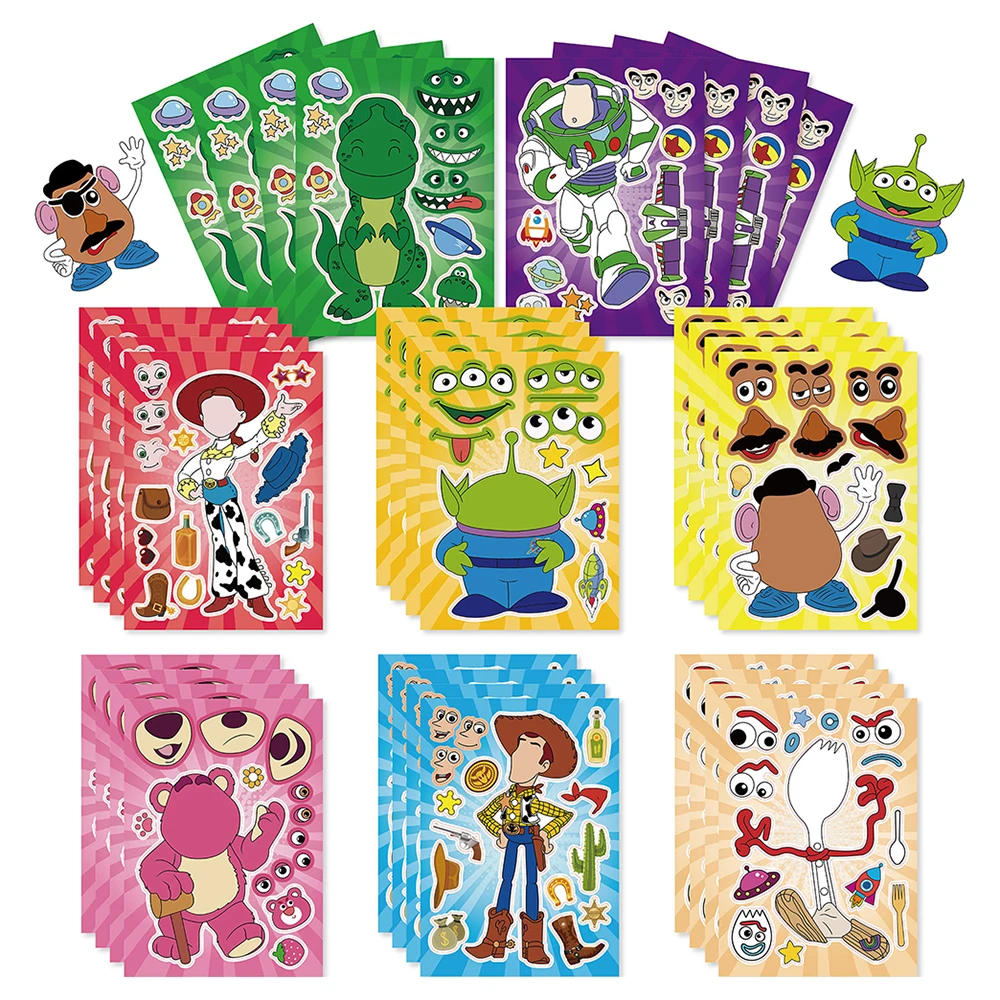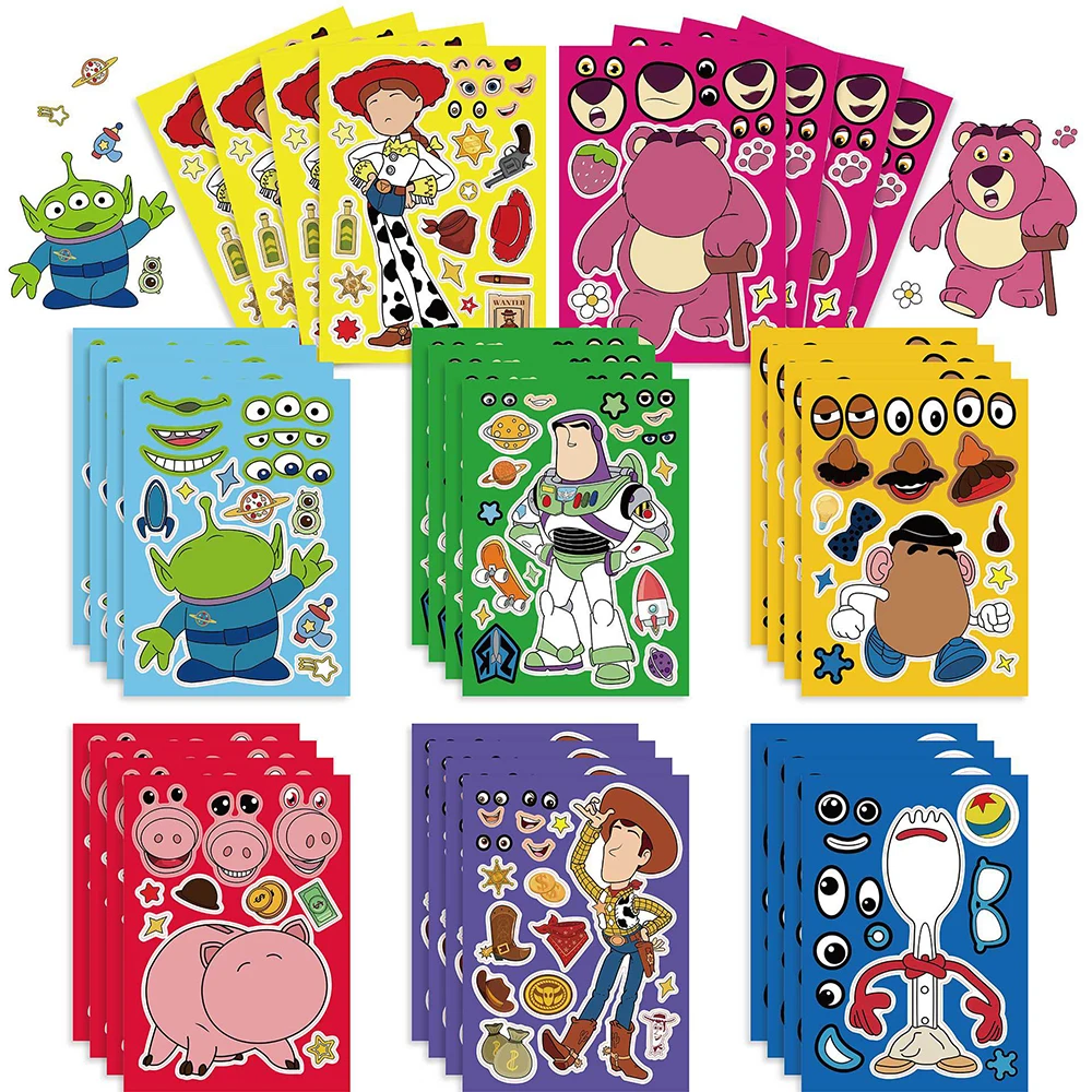 8/16Sheets Disney Toy Story Puzzle Stickers Game Make a Face Children DIY Assemble Jigsaw Kids Toys Decoration Theme Party Gifts