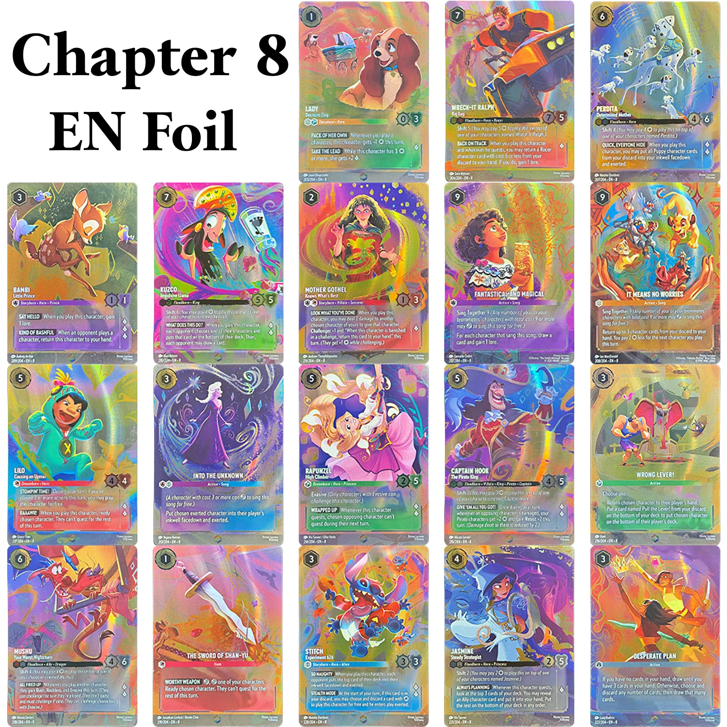 Chapter 8 English Enchanted Foil Lorcana Proxy Cards Repunzel/Into the unknown/Lilo/Stitch/Mushu/Trading Game Cards Board Game