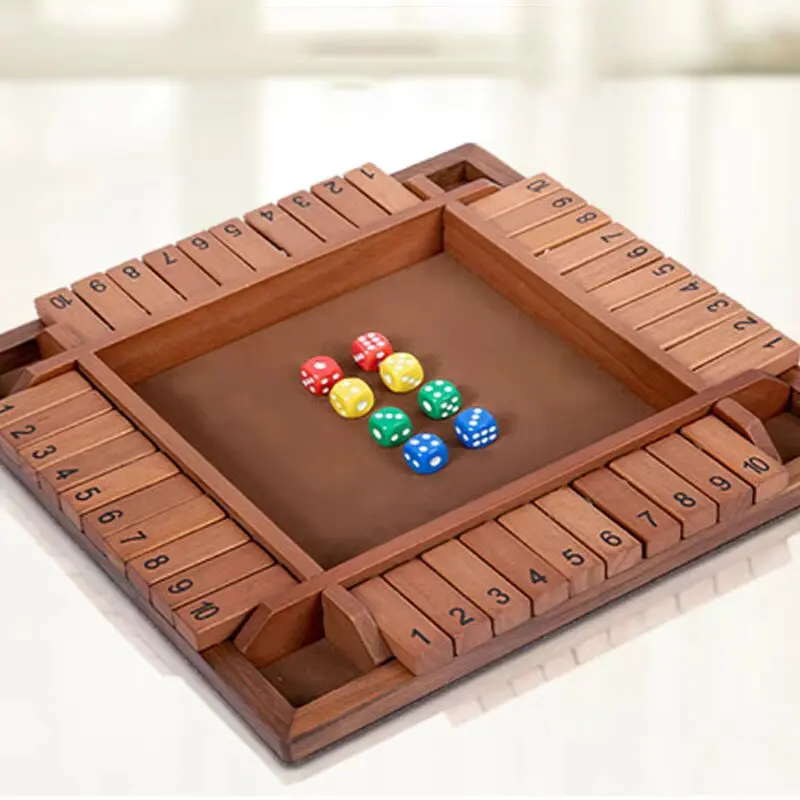 Shut The Box Dice Board Game Wooden Flaps & Dices Game 4 Players Pub Bar Party Supplies Family Entertainment For Kids & Adults