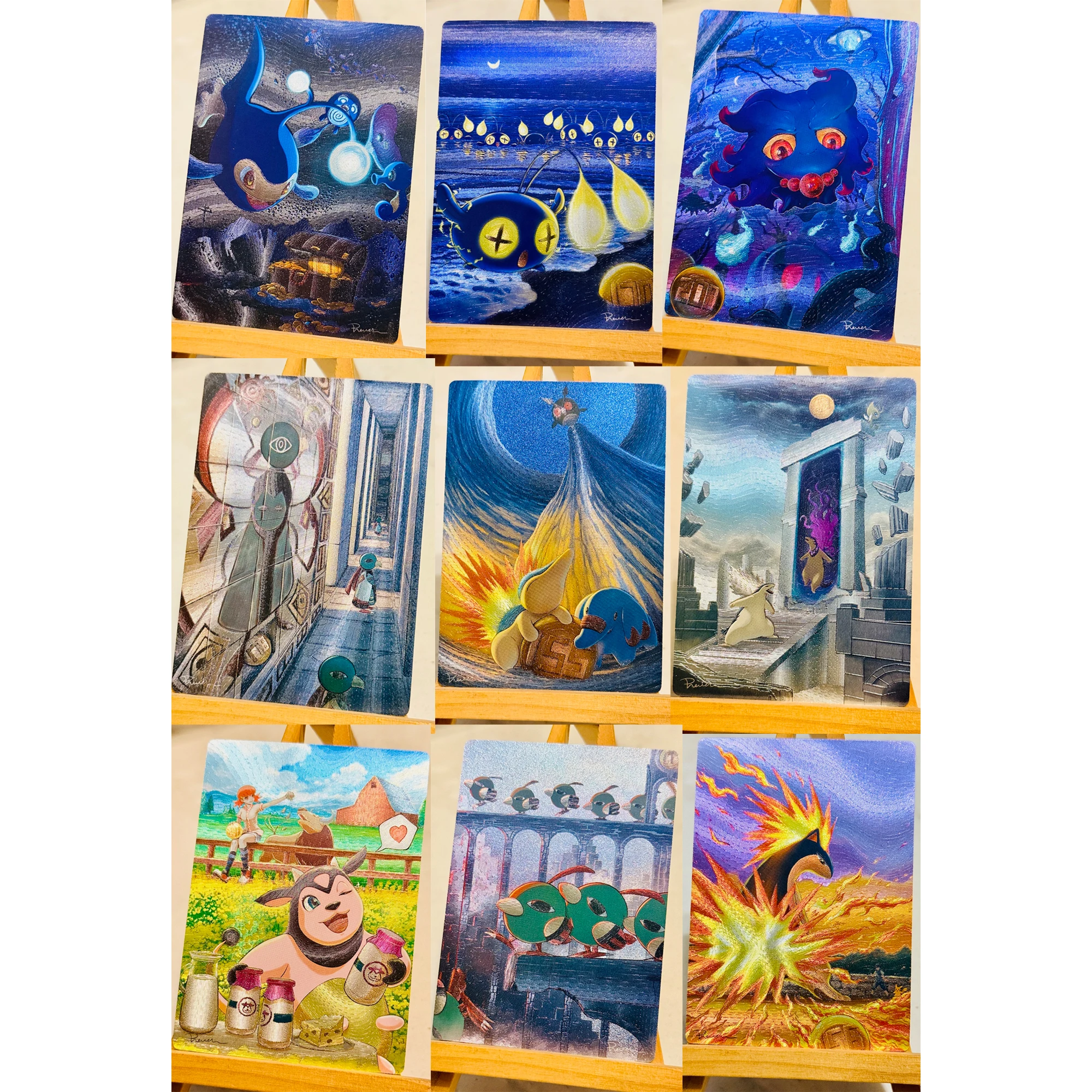 9Pcs/set PTCG Chinchou Tyranitar Texture Flash Card Diy Self Made Classic Game Anime Collection Card Gift Toy