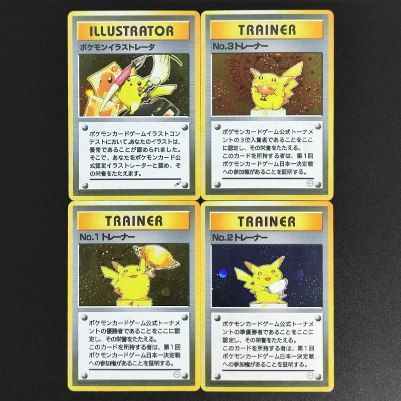 DIY Self Made Proxy PTCG Japanese Illustrator Pikachu Fan Art Trainer Trophy Series Pikachu Hobby Collection Card Toy