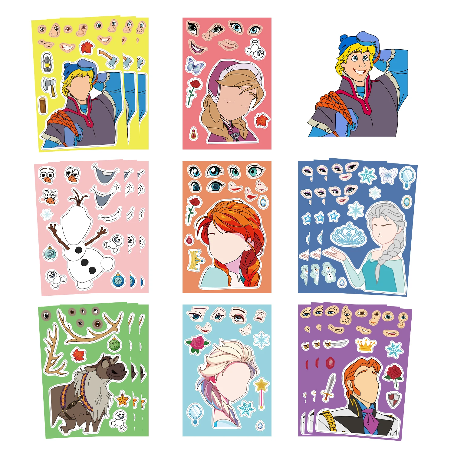 32Sheets Children DIY Puzzle Sticker Frozen Face Funny Anime Assemble Stickers Kids Toys Boys Girls Gifts